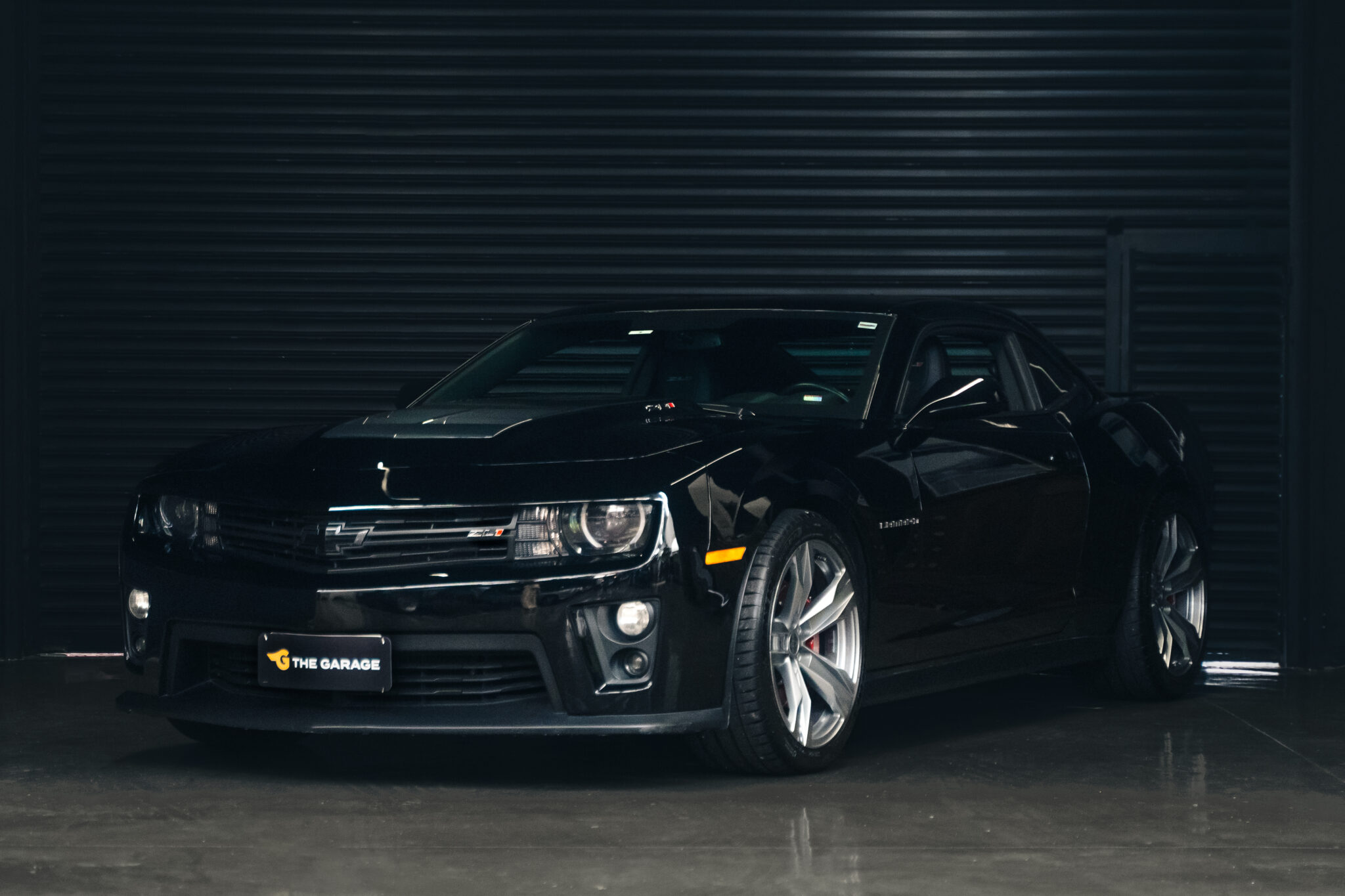 A cor preta realça o design musculoso e intimidador do 2014 Camaro ZL1 Gen5. As linhas aerodinâmicas são complementadas por detalhes como o capô de fibra de carbono com extrator de ar, bem como, as rodas de 20 polegadas de alumínio, que acentuam o visual robusto e garantem eficiência aerodinâmica. Além disso, possui parachoque com splitter integrado pra down-force, com faróis auxiliares duplos, farol principal com duplo-xenon e angel-eyes, grade frontal “heritage” com maior captação de ar, capô com “cowl” alto e insert central de fibra de carbono e grandes extratores de vento e calor, saias laterais com “ground-effefts”, aerofólio traseiro maior, pra mais down-force e difusor traseiro com janelas pra ponteiras duplas de escape, com NPP (sistema de cut-outs pra opção de mais ou menos som) e mud-guards pra não expor os imensos pneus alojados na traseira.